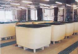 | ■特長 ●角型のコーナー部の半径を大きく取った水槽ですので、角型に比べ水の回転に優れ、また、丸型に比べ場所の節約になります。 ●底面中央部に向けて傾斜を大きめに取ってあるため、沈殿したゴミ等が集まりやすくなっています。 ●すべての水層が脚付きで底排水が可能です。高さを変えた水槽も製作いたします。 ![]() ■仕様