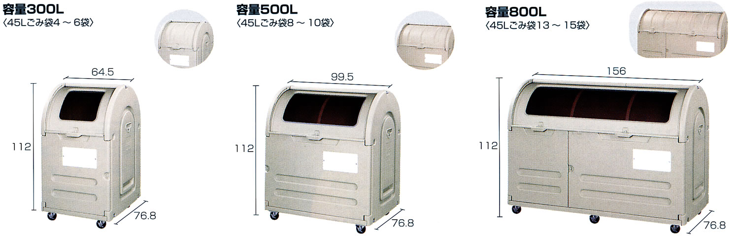 高さ、奥行が同じですので容量の異なるサイズを並べても美観を損ないません。