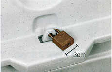 収集容器の管理や有価物の保管に、簡単に鍵(南京錠)が取付けられます。南京錠は3cmをご使用下さい。(鍵は付属しておりません。)