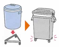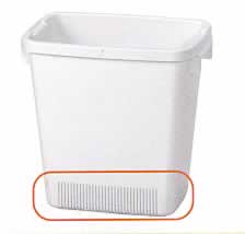 ●底面傾斜で片側穴でもしっかり水切り 水切りかごの底面は半分が傾斜になっています。 この傾斜によってカゴの中に水が残らずしっかりと水を切ることができます。 ![]() ●ジャストサイズの水切り穴 細かなゴミを通しにくく、しかも目詰まりしにくい大きさの水切り穴で生ゴミと水分をしっかり分けます。 ![]() ![]() ●角型で省スペース 水切り厨房用ゴミ箱は場所をとらない角型形状。同じ容量の丸型ペールと比べて約75%のスペースで済み、厨房スペースを有効活用できます。 ![]() ●移動も楽々、キャスター付 丈夫な50φのキャスター付。ゴミを入れたままの移動も楽に行えます。 またストッパー付で固定・移動も自由自在。 ![]() ●便利なフタ付 ペールにも水切りかごにも取り付け可能なフタは、使わないときは横にかけれるので省スペースで紛失防止にも役立ちます。 ![]() ●握りやすい取っ手 ペールの片側に、持ち運びやすくて移動させやすい取っ手をつけました。 ![]() ■仕様