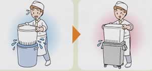 | ■特徴 ●使う方の衣服を汚さない片側穴仕様 両側に水切り穴があると、一見よく水が切れそうですが、そこに落とし穴が・・・ 手前側n水切り穴があると、漏れた汚水等で衣服を汚すおそれがあります。 そこで、水切り厨房用ゴミ箱では片側穴を採用。 これで汚れる心配もなく、安心して作業が行えます。