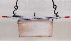 ①本体を製品の重心位置いセットするそして手提げ、又は機械吊りをする。 ②着地すると離脱、取っ手を持って外す