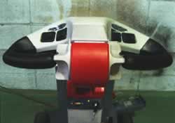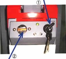 | ■スロットルを回すだけのラクラク操作 スロットルでスピード・前後の調節の簡単操作 ![]() @キースイッチ 専用キーを差し込むことにより運転可能。 安全に管理できます。 Aッテリー残量計 内蔵されたバッテリーの残量を表示します。 ![]() ■バッテリー充電器コード 家庭用100Vで充電可能 ![]() ■裏面 ![]() ■仕様