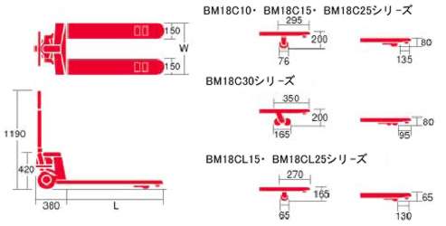 ハンドパレットトラック 品番 MB18C10-48シリーズ 廃番 後継機種はこちら→ 標準タイプ:MB18D10-48K 低床タイプ:MB18DL10-58K |