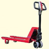 <特長> ●ニュートラル装置付油圧ポンプですからハンドルレバーを中立位置にすると軽いハンドル操作で運搬可能。 ●B過負荷防止付油圧ポンプに下降スピードがレバーで調整できる機構付。 ●プレス技術を駆使した板厚4.5mmの強力フォーク材使用。 ●フォーク形状を樹脂パレットに入り易くしています。 ●車輪:ポリウレタン |