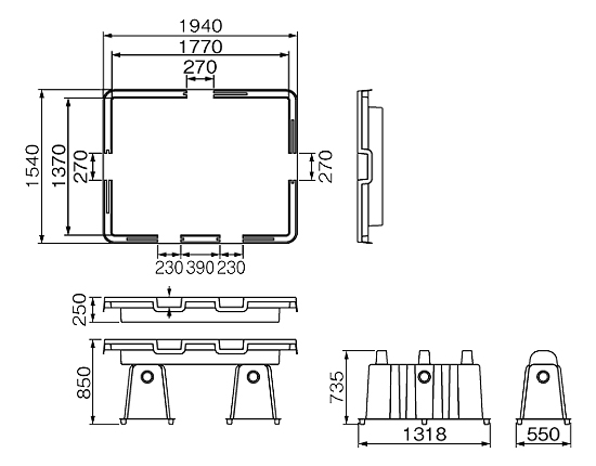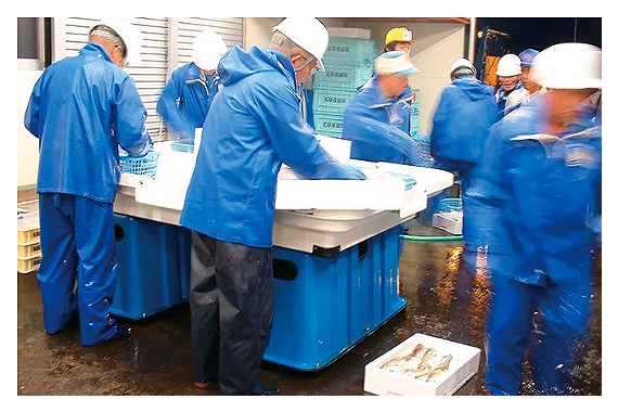 | より清潔に衛生面と、作業効率を考慮した選別台。直置きせず選別作業を行えます。 魚市場などで、収穫物を地面に直置きせず選別作業を行える選別台です。 開閉式の仕切板により、作業人数や選別用途に合わせた作業が行えます。 ![]() ■特長 ●組立接合式 組立接合式なので、天板と脚の取り外しが可能です。省スペースでコンパクトに収納できます。 ![]() ●開閉式の仕切板 1~5人までの選別作業者の各使用にあわせて対応可能な開閉式仕切板。 ![]() ●2台を仕切部で繋げるとより広く使え漁獲量の多い際に最適です。 ![]() ●ゴム足 滑り防止用に対応しています。 ![]() ●様々な移動や収納にも便利です。 - 天板の背面加工により、スライド移動に対応しています。 - 天板、脚ともにフォークリフトでの移動ができます。 - 天板と脚を取り外せば、省スペースでコンパクトに収納できます。 ![]() ■使用例(漁港・魚市場など) ![]() ■仕様
