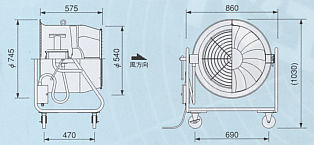 ■風速分布曲線 (展開角度17°) ![]() ■寸法図(単位㎜) ![]() ■仕様
