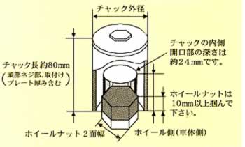 A縦方向は、チャックがホイルナットを10mm以上掴むようにして下さい。(下記の図@を参考)