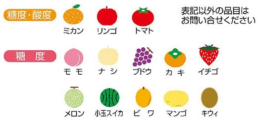 | ■非破壊測定の魅力 ・測定した果実・野菜をそのまま商品として出荷でき、ムダがでません。 ・短時間で多くのサンプルを測定できます ・周囲を汚さず、廃棄物も出しません。 ![]() ■測定原理 サンプルに照射した光と、果実内部から戻ってくる光を対比して、糖度と酸度を測定します。 ![]() ■測定データの保存 測定データは、MB32BA-100R-1シリーズで約4000件 ■測定結果画面表示 ![]() ■測定可能品目 ![]() ■仕様