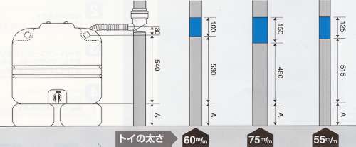 | ■特徴 1.置き場所に困らない。110㍑小型タイプです。 2.付属品つきです。 3.オーバーフローは必要ありません。タンクが一杯になれば「トイ」より排水できます。 4.ドレンロ付、掃除が楽々にでいます。 ■取り付け方 (1)タンクの位置を決めます。(雨トイの左、右どちらでも取り付け出来ます) ①タンクの位置を決めます。(出来るだけ「トイ」の近くにして下さい) ②架台を設置します(樹脂架台はオプションです)市販のブロックでも可です ③付属品の接続ホース(300m/m)の範囲内で設置して長い場合は必要な長さに切断して使用して下さい (2)雨トイをカットします。 雨トイに、マジックやビニールテープせカット位置に印をつけてノコギリでカットします カット位置と寸法:mm(3)集水機を雨トイに取り付けます ![]() (4)ホースを取付ワイヤーバンドで固定します (5)使わない接続ノズルに止水キャップをし、ワイヤーバンドで固定します (6)取り付けが完了しましたら本体安定の為に点検蓋を外し10L程度の水を注いで下さい。(重みで安定します)水を入れた後は、虫が入らない様に点検蓋をし必ずネジ止めしてください ■寸法図 ![]() ■仕様