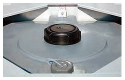 輸送の効率化とスペースの有効活用が可能 フォークリフトで運搬可能 内部タンクは薬品に強いポリエチレン製 タンク底部の傾斜により液が残らず清潔 |
