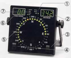 | ■特徴 このセンサーはもともと海洋データブイ用として開発された製品で、腐食や浸食に強く、丈夫でしかも従来の風向風速センサと比べ小型・軽量なため、取り付け・取り外し、メンテナンスが容易です。表示器は風速を3桁デジタル表示、風向を36方位のドットLEDで表示します。1台のセンサで表示器を16台まで直列に接続できます。 ■風向風速表示器 ●小型・軽量なセンサと簡単操作の表示器。 ●表示器は複数台数の連結が可能です。 ![]() ①警報状態表示部 風向・風速の警報が設定されている場合にはLEDが点灯し、警報時にはLEDが点滅します。 ②最大瞬間風速・風向表示部 7セグメント3桁LED表示で瞬間風向、平均風向、最大瞬間風速のいずれかを選択して表示します。 ③「RESET」「SELECT」キー 最大瞬間風速のリセットキー。また、各機能の設定の選択キーとして使用できます。 ④「BRIGHT」「ENTER」キー LEDの輝度を調整します。 また、各機能の設定の決定キーとして使用します。 ⑤風向表示部 ●平均風向の場合 オレンジ色で平均風向を表示します。 グリーン色で風向の軌跡が分かります。 ●瞬間風向の場合 オレンジ色で現在風向を表示します。 グリーン色で風向の軌跡が分かります。 ⑥風速表示部 7セグメント3桁LED表示で瞬間風速、平均風速のどちらかを選択して表示します。 ⑦風速単位表示部 現在選択されている風速単位をLEDの点灯で表示します。 ■仕様 ●風向風速表示器