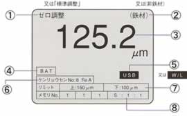 | ■プローブの互換性 プローブに互換性を持たせることにより本体とプローブの組み合わせが自由に。膜厚計本体にプローブに別売の電磁式プローブ(鉄用)と渦電流式プローブ(非鉄金属用)を測定対象に合わせて接続。プローブの差し替えのみで、鉄及び非鉄の両金属素地上の皮膜を測定できます。 ![]() ■スリムなボディ設計で手持ち作業の疲労低減 従来の膜厚計(点線部分)と比べるとボディがすっきりスリムに。女性や手の小さな方にも抜群のグリップ感。 ![]() ■検量線登録機能(MC29WT-8200、MC29WT-8300) 測定前には必ず「ゼロ調整」と「標準調整」の2点調整をします。この2点調整の組み合わせを検量線(素地特性)といいます。検量線は金属素地の材質・形状・厚みなどによって変化しますが、その特性に合致した検量線を登録・選択していつでもすぐに測定作業が開始できます。検量線の登録数は10本(MC29WT-8200)、100本(MC29WT-8300)。 ■わかりやすいガイド表示画面 LCD画面上にメッセージを表示。操作手順をカンタン・わかりやすくガイダンスします。 ![]() ■微弱無線出力(MC29WT-8300) 別売の専用受信器により、日本国内専用の微弱無線でデータ転送が可能。 ※環境によってはご使用できない場合があります。 ■上限値/下限値リミット機能(MC29WT-8200)、100本(MC29WT-8300) 登録した各検量線1本ごとに、1組の限界値を設定可能。測定値が上限値/下限値の範囲を外れた場合には、設定限界値の点滅および警報でお知らせ。工場の生産過程などで、皮膜が管理基準で定められた範囲内か否かを迅速に判定する際などに役立ちます。 ■パソコンへのデータ転送(MC29WT-8100、MC29WT-8200、MC29WT-8300) USBケーブルでパソコンと接続し、判定データを転送可能。測定の都度にリアルタイムで転送、または、メモリしておいたデータの一括送信も可能(MC29WT-8100を除く) ■大容量の測定値メモリ機能(MC29WT-8200、MC29WT-8300) メモリ機能により、測定、記録作業が1人でもOK。検査作業の省力化とコストダウンが図れます。 1日に数千点もの膜厚検査を行う多点測定も余裕でカバー。メモリ数は10,000点(MC29WT-8200)、20,000点(MC29WT-8300)。残りメモリを気にすることなく作業ができます。測定データは、グループブロックなどに細分化して保存。 ■統計機能内蔵(MC29WT-8200、MC29WT-8300) 全メモリデータやグループ、ブロック、セクション単位のデータなど、LCD画面上で統計が可能。 ![]() ■本体LCD 表示項目(MC29WT-8200、MC29WT-8300)