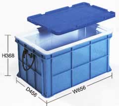 | ■特長 ●新技術ダブルブロー成形法による本体の一体成形化を実現 従来、内箱と外箱を別々に成形していたものを一体で成形。 従って、発泡ウレタンが隙間なく充填され、抜群の保温・保冷効果と強度を示します。 ●優れた洗浄性 外壁はDouble Blowによる一体成形ですから、洗浄性に優れ、水が浸入する心配もありません。 ●抜群の機能 フタにはバンド掛け用の切欠があり、より密閉性を高められます。 ■断熱材として発泡ウレタンを採用。 従来の発泡スチロールより保温・保冷効果を30%UPさせました。 ![]() ■タイプ