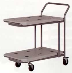 | ■全種ブレーキ付き 後輪(固定)キャスターに足踏み式のブレーキを全機種に標準装備しています。 操作がし易く、確実にロックできます。 ![]() ■デッキ面滑り止め デッキ面に6箇所の滑り止めを設置しています。 積載物の滑りや脱落を防止します。 ![]() ■タイプ