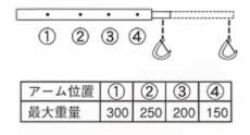 ■寸法図 ![]() ■取付台座部寸法 ![]() ■アーム位置による吊り上げ能力(kg) ![]() |