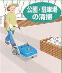 | 広いスペースを手早くクリーンアップします。 倉庫・工場・駐車場・ゴルフ場・公園・スポーツ施設に。 快適好環境や様々な利便性を考えた高機能設計です。 ![]() ■特長 ●手押し運転の為コードレス 掃除中にじゃまなコードの採り回しが不要で作業時間も短縮。電源の無い屋外スペースの掃除もOK! ●操作性&清掃の対象 誰でも手軽に使えて操作は簡単です。砂・砂利ガラス・紙類・落葉・枯草等あらゆるゴミを一掃。 ●余裕の掃除能力。 よりクリーンな環境ニーズに応えて、毎時2,275㎡の掃除能力は、人手不足も解消します。 ●大型ダストホッパー。 樹脂製で軽量の為ゴミ捨ても苦になりません。ワンタッチで脱着でき、ホコリによる詰まりもありません。 ●後退時も仕事をします。 全身時も後退時もメインブラシの回転方向は同じ。手狭なスペースの清掃の時に便利です。 ●軽量・耐久設計のホッパーは樹脂製で取り外しも簡単。機能性に優れたデザインです。 ![]() ●前進時も後進時もメインブラシの回転方向は同じです。 ![]() ●回転ブラシの上下調節が可能。床面の高さに合わせて使用できます。 ![]() ●サイドブラシが上下可動。コーナー清掃時以外は邪魔になりません。 ![]() ■こんなところで役立っています。