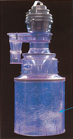 ●直列3段特殊サイクロン内部で流体が高速旋回する様子を撮影しました ![]() ●流体が高速旋回し下部へ(たすきがけのう様に見えます)降下していく様子を撮影しました ![]() [タンクの機能と効果] ●特殊樹脂素材を使用。強度(耐圧マイナス40Kpa)・耐薬品性にも優れています。 ●回収物が見える、回収量が見える中身が見えれは汚いから即廃棄する。 ●PTGCタンクは、ゴミを隠せないから、即座に破棄する意識を生ゴミを出さないと言う意識改革に繋がります。 ●クリーナーの稼働率が上がり、品質管理向上、安全衛生管理、整理整頓清潔清掃5S-6=運動に貢献します。 ●タンクの内側は突起物はなくフラットです。タンクを手洗浄するときも安全です。 ![]() [タンクの着脱自在・廃棄が簡単] ●タンク着脱レバーでワンタッチ!静かにゆっくりと透明タンクが床に降りる安全設計。 ●透明タンクと合わせて、作業後のゴミ処理が速やかに行えます。