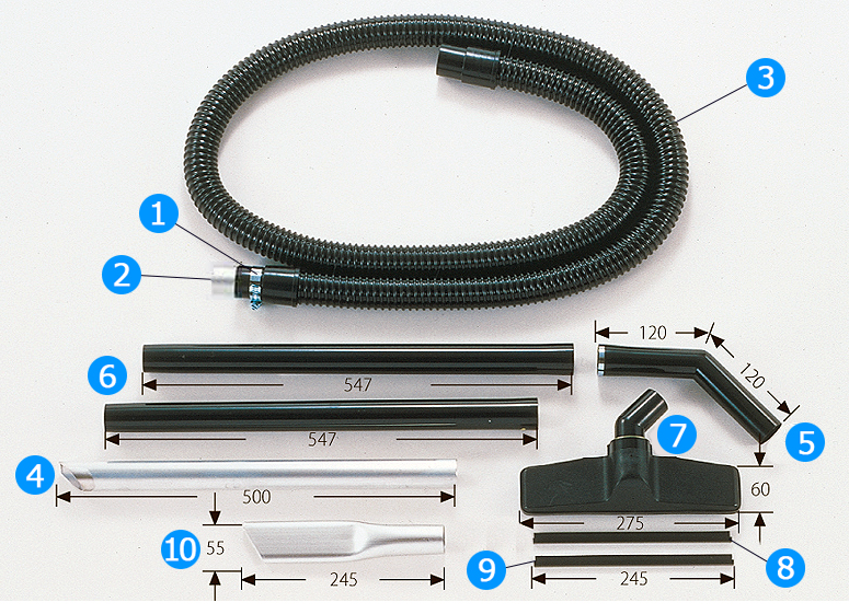 ■湿式用フロートメカニズム ●水や油など液体吸引時のミスト(霧状化)のモータへの混入を防ぎます。 ●水フィルターをなくしました。(弊社従来機比)。 ※湿式(液体吸引時など)は乾式用エレメントフィルターは使用しません。 ■アタッチメント