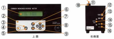 | ■特長 ●瞬時濃度表示、1分間平均値表示が可能。 ●ロギング機能を搭載し、データ収録後、PCへの一括送信が可能。 ●フリーラン取込機能を搭載し、現在データを任意の間隔(1秒~1時間)で連続的にPCへ取込可能。 ●アナログ出力も搭載。 ■各部の名称