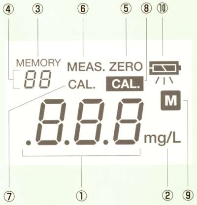 最大99ポイントまで、本体内のメモリーに測定値を保存することが可能です。メモリー確認モードに切り替われば、その場で保存内容を見ることも出来ます。また、ユーザー自身が設定した濃度換算方式を記憶する、ユーザー校正モードも備えています。 ●豊富な情報量 大画面ディスプレイに、動作状況を分かりやすく表示します。電池残量は3段階で表示。電池交換時には、点滅してアピールします。