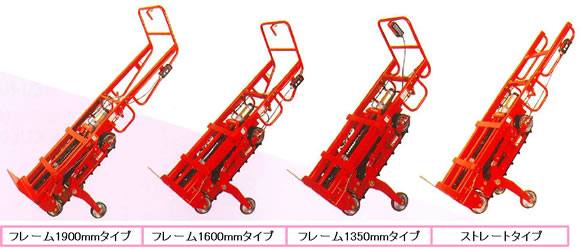 ■MC4U-606SFVSのポイント ●補助輪の出し入れはロット式でロック/解除は手元で操作が可能 ●平地走行用ブレーキは操作しやすい上部に設置 ●フォークのスライド幅は上へ60mm~下へ190mm可動 ●フォークの形状を自販機のアンカー対応形に改良 ●荷台フレームに保護ゴムを装備 ■タイプ MC4U-406SFS/MC4U-606SFSは荷物の高さに合わせてハンドル長さを選ぶ事が出来ます。