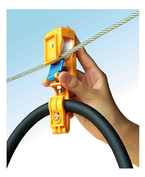 ●取付けは、ワンタッチ メッセンジャーワイヤーへの取付けは、押し込むだけです。 ケーブルのクランプも、確実で簡単です。高所作業が簡単で、安全になりました。 ●軽くて、強い。 耐久性に優れたポリカーボネート樹脂ですから、屋外でも使用できます。 ●保守・点検も簡単 メッセンジャーワイヤーを張った後でも、取付け・取り外しが、簡単です。 保守・点検も容易になりました。 |