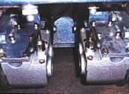 | ■特長 ●作業床の昇降でアウトリガーが自動的に着離し、作業車の移動が不可となります。 ![]() ●人力による移動が可能です。 トラブルが発生しても、人力(1人)による移動が可能です。 ・切替レバー ![]() ●DCモータ駆動走行 満充電(24V (12V65個2個) 連続走行試験運転、3.5時間(時速約2.2km/hr)でも余裕 ●極小回転半径 単独での使用が可能となり、狭い場所での走行に威力を発揮 ・Wジョイスティックで左右の独立駆動が可能 ![]() ●自在に動く8輪一対車輪 ・どんな方向にも動かせて床面に傷を付けにくい車輪です。 ![]() ![]() ●安全性の高い吊金具 ![]() ■安全装置 ●非常降下バルブ(手動) ●車体傾斜警報装置(昇降圧力スイッチ) ●過積載防止装置(電装圧力スイッチ) ●過積載防止装置(油圧回路) ●昇降中警報装置 ●作業中表示灯及び非常停止装置(非常停止ボタン) ●急降下防止弁(ヒューズ弁) ●フットペダル ●昇降時自動設置型アウトリガー ●昇降時走行規制装置 ●作業中操作部保護機能(破損及び誤作動防止) ![]() ■基本装備