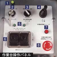 ■作業中点灯標示による安全装置 作業中操作部にある非常停止ボタンは、作業状態の明示と誤作動防止に役立つ安全装置です。 ![]() ![]() ![]() ■仕様