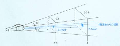 ■特長 MD17A-2200は画像読込ソフトを標準付属としているほか、放射率など測定条件の変更、解析機能の充実した別売り解析ソフトを用意しており、テンプレート機能も使え、手間を掛けないで簡単にレポートが作成できます。 MD17A-1200は入門版・安価版であり、温度分解能0.2℃、画像保存数100画像、保存した画像は標準付属の画像読込ソフト及び解析ソフトが利用できます。 従来は米国政府の管理下におかれた素子を採用していたため、申請手続を要していたが、新タイプ2機種は貿易管理令別表に非該当品素子を採用しているため、申請手続きを不要とし海外持ち出しも容易になっています。 熱画像カメラでは、面で温度分布を視覚的に捉える事ができ、熱の流れを知ることにより真の不良箇所を特定でき、事故防止のための保安点検の機器として、誰でも状況を確認できる画像で保存できる熱画像カメラです。 ●非冷却マイクロボロメータFPA素子搭載。 ●小形・軽量(700g)のハンディタイプで携帯性抜群。 ●温度分解能0.10℃を実現(MD17A-1200は0.2℃)。 ●屋外使用にも適する長波長(7.5〜13μm)を採用。 ●片手で簡単に操作可能。 ●手ぶれをしても画像が流れない60Hzのリアルタイム画像。 ●MD17A-2200は便利な測定モード搭載。スポット(3点)、エリア、オートスポット、温度差、アイソサーモなど(MD17A-1200は固定スポット)。 ●MD17A-2200は200画像、MD17A-1200は100画像保存。保存データは解析ソフト(オプション)で解析。 ■標準構成 カメラ本体、収納ケース、AC、電源ユニット(電源ケーブル)、バッテリ、USBケーブル、 レンズキャップ、ハンドストラップ、画像読込みソフト、取扱説明書、 (MD17A-2200は充電器およびバッテリが追加されます。) ■測定距離と測定面の関係(標準19°レンズの場合)(m) ![]() ■仕様