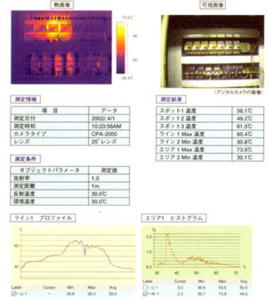 | ■オプション ●解析ソフト 品番 MD17A-1200OP1 廃番 本ソフトはwordにアドインされ、豊富な解析機能を使用し、熱画像、プロファイル、ヒストグラム、 測定結果表などを含むレポートが簡単に作成できます。 テンプレートにより、効率のよいレポートが作成できます。(word 2000(SP1)以上が必要です。) レポート作成例 ![]() ●MD17A-2200のみ