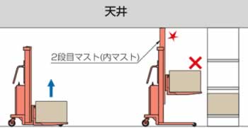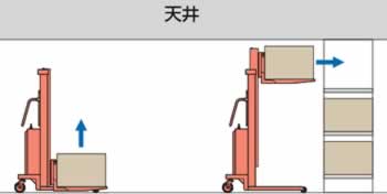 ■従来型はフォークを上昇させると同時に2段目マストが上がるため、マストの出っ張りが天井に当たり、高く揚げら れなかった。 本シリーズはフォークのみが上昇する為2段目マストの出っ張りが邪魔すること無く、高くフォークを上げることが出 来、棚を有効に使うことが出来ます。 ●荷物を高く揚げようとすると、2段目マストが天井に当たり使えない。 ![]() ●2段目マストの出っ張りが無い為、天井近くまで荷物を揚げることができる。 ![]() ■寸法図 ![]() ![]() ![]() ■外形寸法 (単位:mm)