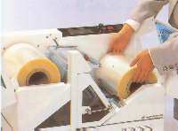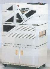 | ■特長 最大売れ筋の文庫本からA5判までの本をガイドに合わせて置くだけで自動包装ができます。 処理スピードは1時間当たり約960冊です。大量処理や作業時間の短縮に役立ち、経費もグーンとオトクになりました。 ●フィルムセットが簡単 フィルムはフィルムカバーを開けてローラー上に乗せセットするだけ。 1回のセット量1000mロール2本で約5600冊から約7400冊の包装が可能です。 ![]() ●コンパクトボディで移動ラクラク。 幅60cm、奥行き40cm、高さ100cmのコンパクトボディは、店内をラクに移動でき必要な場所での作業が可能です。また、本体は3つのブロックにセパレートでき運搬・移設が簡単です。 ![]() ●手差し機能 自動包装できない「変形」「幼年誌」「写真集」などの特殊なサイズは、手差し機能を利用して包装もできます。 指定の袋に入れて手差し口から本を入れます。 ![]() ●液晶パネル搭載 操作中の内容や作業の指示・警告が全てモニター画面に文字で表示され、初めての作業にも戸惑うことなく使用できます。 節電タイプで15分間使用しないと自動的にスイッチがOFFになります。