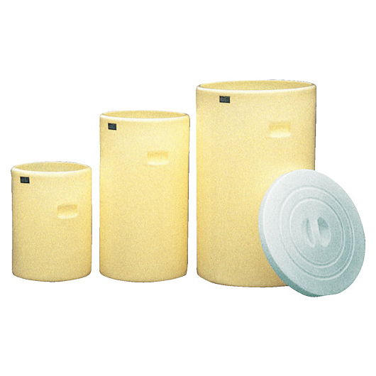 | ■特長 ●架橋ポリエチレン製で、60℃までご使用になれます。 ●目盛がついており、計量に便利です。 ●使用条件 内容液の比重1.3以下。 ●把手付です。 ※フタは別売りです。 ■用途 薬品・食品の保管・運搬 ■仕様