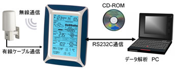 気圧・気温・湿度を同時測定し、データを記録保存! ●気圧、屋内気温、湿度、屋外気温、湿度の変化を測定します。 ●計測でデータは内部の記録装置に保存され、後でパソコンにて解析できます。 ●モニターはとても見やすい液晶表示でタッチパネル採用により設定が簡単です。 ●屋外気温、湿度センサーは無線、有線でも通信可能です。 ●付属のソフト使用で最大5ヶのデータをパソコンに同時に取込みことができます ●パソコンに接続し気象画面で各々の変動をリアルタイムでいることができます。 |