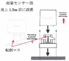 | ■特長 本器は、転倒マス雨量計センサー発信器と3ヶ所のLCD表示部(モニター)を備えた有線式降雨量計です。 屋外に設置された雨量センサー発信器がカウントした降雨量データを(一転倒0,5mm)屋内の表示部に有線にて転 送し3ヵ所(表示:1 表示:2 AUTO)同時に計測値を表示します。 小型で低価格、操作及び取り付けが簡単な簡易型雨量計です。 1時間当たり雨量も測定できます。 ![]() ■機能 ●3つの表示(表示1、表示2、AUTO) ●手動リセット機能(表示1、表示2) ●累計降雨量自動リセット機能(AUTOに表示):2時間データ無しの場合自動リセット ●単位選択機能(inch/mm) ※自動電源遮断機能:12時間データ無しの場合 ■仕様