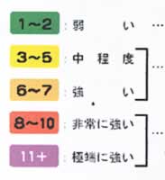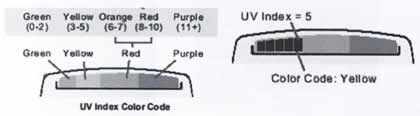 ![]() ![]() 2)UVインテックス 前途にとおり、紫外線の人体に与える影響は波長によって異なります。 このため国際的にはUVインデックスという指標です。 (前途のCIE紫外線量(単位W/m2)に4○をかけて求めます)。 UVインテックスで表される紫外線の強さは下記のように分類されます。