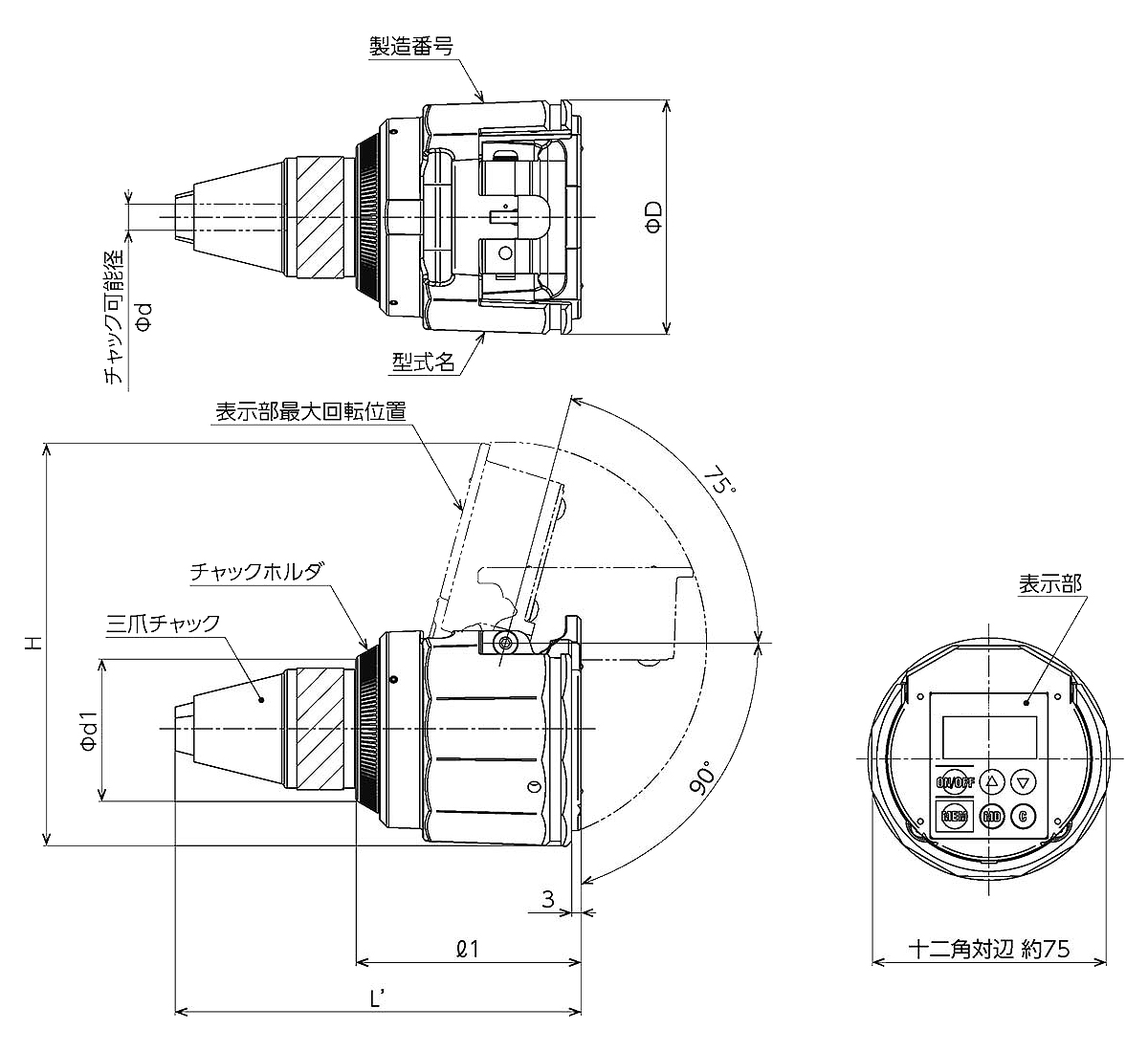 2~200cN・mまでの微小トルク測定用のデジタルトルクゲージをシリーズ化。![]() ■特長 ●デジタル式・表示器一体型のデジタルトルクゲージ ●ハンディタイプの微小容量トルク計。 ●表示部は作業姿勢に合わせて角度調整ができます。 ![]() ●操作性、作業性の良い表示部一体型を採用。 ●精密機械、電子機器などの小トルクの測定、また組み立て作業に最適なトルクゲージです。 ●過負荷についてはストッパがついているので安心です。 ●測定データは999データまで自動でカウントアップしメモリでき、メモリ内のサンプル数・最大値・最小値・平均値も表示できます。 ●電源はコイン形リチウム電池(CR2450)で約10時間の連続使用ができます。 ●パソコンへのデータ転送はUSBケーブル(別売:MD31T-N3T-384)接続が可能です。 ![]() ●グローバル設計。 ●CEマーク付きでEU圏でも安心してご利用いただけます。 ●Excel(R)でデータ管理を可能にする有線でのデータインプットツールが無料ダウンロードできます。 ※Excel(R)はMicrosoft Corporationの登録商標です。 ■用途 ●微小トルクの測定、検査、締め付け作業用。 ●トルクドライバのトルクチェックも可能。 ※オプション測定台使用■寸法図 ![]() ■共通仕様