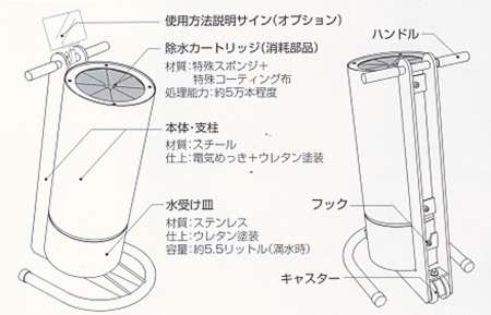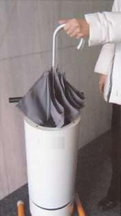 「ごみ」も「ランニングコスト」も大幅に削減。 雨の日の床濡れ対策として利用されるビニールの傘袋ほど短時間で使い捨てされ、ゴミとなるものはありません。「傘乾燥機」はこの雨の日のゴミの減量をお手伝いします。もちろん減らせるのはゴミだけではありません。傘袋を購入にかかるコストをはじめとして、その補充や回収・破棄といった管理手間・管理コストも削減できます。 エコロジーとエコノミーを両立させる画期的商品です。 ハンドルも付いて出し入れもより簡単に! |