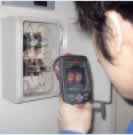 ■用途 ●電気設備を素早く検査 InfraCAMは、隠れて いる電気的問題を即座に見つけ出す完璧なツールです。 電気設備を検査し、必要なら直ちに修理し、問題が解決したかどうか点検します。 また、施行業者が適切に作業したかどうか確認もできます稼動前の設備を素早く精査します。 InfraCAMの3.5インチ液晶ディスプレイに全ての情報が表示されます。 ●防火 小さな電気的問題が重大な結果を引き起こすことがあります。 それを放置しておくと、電気接続部が溶け始めます。 また、火花が飛散して火災を起こすこともあります。 InfraCAMを使用すれば、問題になりそうな箇所を熱画像で表示し、火災を防止できます。 ■電気設備 ![]() ■ブレーカー ![]() ■仕様