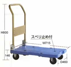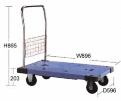 ●均等積載荷重 150〜300kg ●強化プラスチック製の樹脂台車です。 |