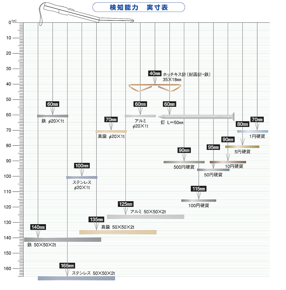 アルミニウム、ステンレスなどの非磁性体、鉄などの磁性体など、全ての金属を検知します。
