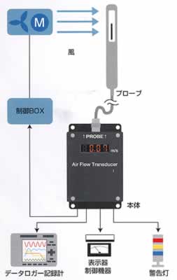 | ■特長 ●工場生産ラインの品質検査に 製品の品質を維持するために、乾燥工程、成型工程などで一定の風速が保てているかの確認や、風速分布の常時監視および制御を行えます。 ![]() ●プリント基板の熱対策の評価に サーモグラフィ装置と併せて基板上の風速を測定し、電子基板の冷却効果の検証が行えます。風速プローブは室温+50~60℃に加熱されますが、鏡面体ですのでサーモグラフィ装置には熱源として写りません。 ![]() ![]() ●局所排気装置・FFUの風量監視に ドラフトチャンバ等での排出風量を監視、制御することによって、有害物や危険物取扱作業時の作業者への暴露・環境への漏出防止が行えます。FFU(ファンフィルタユニット)の目詰まり、交換時期の予測に風速値の変動が利用できます。 ![]() ■住宅の24時間換気の監視に 常時換気では換気システムの効率性、経済性が要求されます。給気、排気量のバランシングや在宅時の風量アップ、窓開放時の風量ダウンなど、住宅の換気風量を直接的に常時監視する効果的な制御を行えます。 ![]() ■温度補償回路について 当社の風速計は風の温度が変化しても、風速指示値に影響を与えないように、温度補償回路を設けております。温度可変洞(風の温度を変化させることができる風洞設備)を用いて、温度補償効果を実際の温度で確認しているますので、温度変化のある場所でも安心してご使用いただくことができます。 ![]() ■計測システム例 ![]() ■タイプ