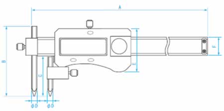 | ■用途 穴の芯間寸法を素早く測定 (表示値からME9-150Aは5mm、ME9-150A2は10mm足した数値が芯間寸法です。) ■材質 ステンレス ■電源 SR44(酸化銀電池)テスト用1個付属 ■使用例 ![]() ■寸法図 (mm) ![]()
