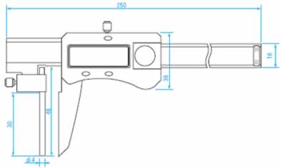 パイプの肉厚などを正確に測定できるように、片方のジョウを丸棒にしてあります。 | デジタル管用ノギス 品番 ME9-150T |