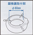 ●ME9-56 別売りのアタッチメントを鏡筒端面に取り付け、リング照明装置をアタッチメントに差し込んで、3本の固定ピンで均等に固定して下さい。 ※鏡筒が平行でない機種には、アタッチメントが必要です。