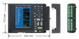 | ■特長 ● 数値データのロギング記録・トレンドグラフ表示が可能 ● 全入力チャネルは絶縁 電位の異なる測定対象も心配無用 ● 大容量メモリカードへリアルタイム保存 大容量フラッシュカードを使用して長期間のデータ記録 ● LAN 経由でパソコンにデータ収集 ・ロガーコミュニケータMF129334 によるリアルタイムPC 計測 ・FTP サーバー/FTP クライアント機能でデータ取得 ・SMTP (E-mail) 機能で異常時のメール送信 ・HTTP サーバー機能でWEB 監視・操作 ■用途 ● 環境・ラボ関連機器の記録に ・機器の出力/ 温度等のトレンド測定 ● 電力・ガス ・電力量計のパルスカウント/ 機器の出力記録 ● 電機・部品製造 ・製品検査/ 品質管理記録 ● 自動車・電車・流通 ・開発時の各種データ取得 ● ビルメンテナンス・工場設備 ・メンテナンス用の長期データ取得 ・食品関連の温度記録 ■従来機種に比べて機能アップ! ● 搭載メモリを4倍に大幅アップ 従来はトータル8M バイトのメモリを搭載していましたが、今回の新型では4倍の32Mバイトに増やすことで、データ数が約1677万データと飛躍的に増えました。 ● 耐ノイズ性の向上 回路を根本から見直し、ΔΣ(デルタ・シグマ)型のA/Dコンバータを採用しました。 このデバイス特有のオーバーサンプリング動作によるディジタルフィルタ機能により、従来困難だったインバータ機器のスイッチングノイズや50/60Hzのハムノイズによる影響を減少させることができます。 ※ノイズ除去の効果は記録間隔が2秒より遅いと最大の効果が得られます ● 動作時、バッテリへの充電が可能 従来、電源オフ時のみバッテリの充電が可能でしたが、測定中でも充電が可能となりました。 これにより長期間の測定・記録中における不意の停電というとき、バッテリが自己放電していて測定が中断する・・ということがなくなり、長期測定での信頼性が大幅に向上します。 ● 内蔵時計の精度向上 時計精度を大きく向上させています。(全機種日差0.2秒) ● 外部トリガにチャタリング防止フィルタを搭載。 外部トリガにフィルタ機能を搭載したことにより、機械式リレーを使用して測定開始/終了させたときも誤動作がなくなります。 ■外部プリンタをドッキング! プリンタユニットMF128992を合体させ、測定結果をその場でプリントアウトできます。 トレンドグラフの長時間記録や、画面のハードコピーを記録できます。 ![]() ■外部入出力ユニットをドッキング! ディジタルI/O ユニット8993を合体させ、外部機器に制御信号を送ることができます(16chまで可能)。 またロジック入力16チャネルも装備。 温度などのアナログ入力+パルス入力に加え、ロジック信号も16点同時入力が可能になります。 ![]() ■パルス入力(積算/回転数変動測定) ・4ch まで入力可能 ・全ch 絶縁 ・電力量積算、流量積算に ※専用入力コードを使用(接続ケーブルMF129641) ![]() ■端子台ユニットMF129329(オプション) カバー付属 ●M3ネジ端子 本体のネジ締め端子台は、線の推奨径はφ 0.32mm。 これより細い線の締め付けには端子台ユニットMF129329を使用してください。 ■温度・電圧入力 ・32chまで入力可能 (MF128420-50:8ch, MF128421-50:16ch,MF128422-50:32ch) ・全ch 絶縁 ![]() ■温度/アナログ、全ての入力が絶縁されています。 - 測定機能 - ●温度・電圧・パルスのユニバーサル絶縁入力です。 測定入力はユニバーサル。 チャネルごとに電圧/温度(熱電対入力/Pt入力※1)、および湿度※1※2を選択可能。 これとは別にパルス入力4chも装備し、(積算/回転数)測定を(電圧/温度/湿度)と同時に測定できます。 さらに各入力ch間の、PCインタフェース系と測定系も絶縁されています。 熱電対と電圧入力などを同時に測定しても干渉や感電の危険がありません。 (対地間最大定格電圧: DC60V) ※1 Pt( 白金測温抵抗体)の入力・湿度の測定はMF128420-50/MF128421-50のみ ※2 湿度センサMF129701(オプション)が必要です。