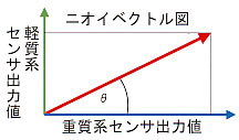 ■「香質」と「強度」をニオイベクトル表意 ニオイの質と強度を独自のニオイベクトルで表意し、「香質」と「強度」を同時に測定します。