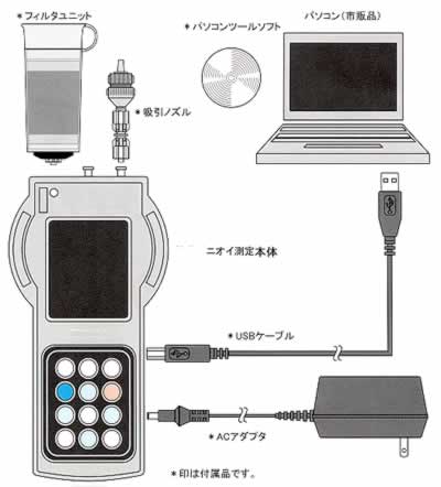 ニオイを現場で簡単に数値化・比較できる。 携帯型のニオイ測定器です。 あらゆる空間のニオイ情報を監視そして管理 |