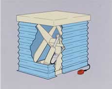 スロープで運搬車をテーブルの上にのせて、そのままリフト・アップできます。(オプション)